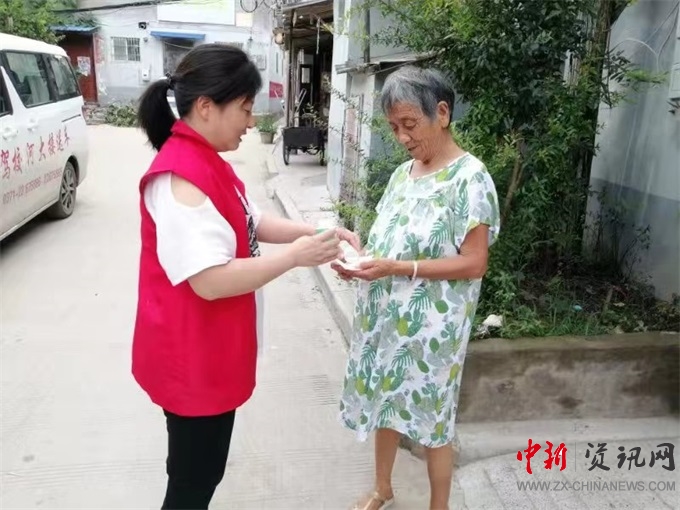 開封市順河回族區(qū)鐵塔街道為群眾發(fā)放消毒泡騰片