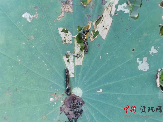 蟲情就是命令,區(qū)農(nóng)村農(nóng)業(yè)局工作人員及時前往現(xiàn)場,在村干部的帶領下實地查看了群眾反映的問題,通過觀察,高速生態(tài)廊道綠化樹木長勢茂盛,枝葉稠密,沒有發(fā)現(xiàn)樹木上有蟲和危害狀。通過到不遠處的蓮花基地進一步查看,蓮葉上有大小不等的不明蟲體正在蠶食,已有大面積危害狀,造成蓮花基地損失慘重。為了解群眾之難,工作人員迅速和林業(yè)專家聯(lián)系,開展網(wǎng)上視頻辨別,確認是斜紋夜蛾,此蟲主要危害農(nóng)作物。產(chǎn)生此蟲的原因主要是近期天氣多雨、氣溫偏高、潮濕。