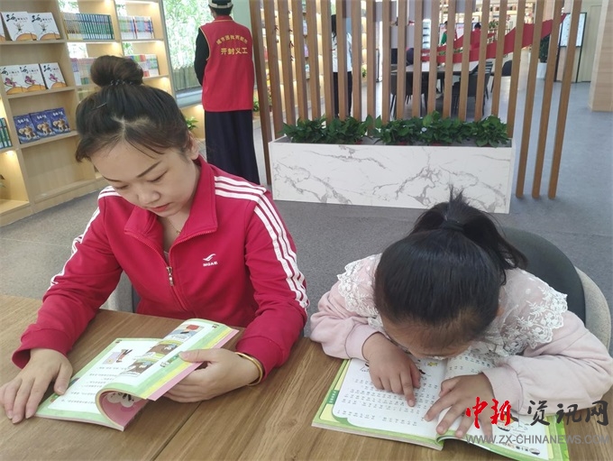 群眾帶著孩子在閱讀自己喜歡的書(shū)