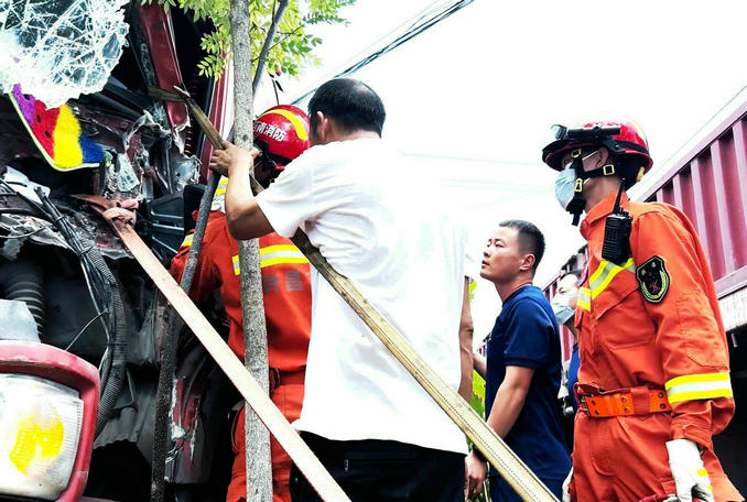 中新河南網(wǎng)6月30日電(張培 姚浩瀚)6月29日11時35分,禹州市消防救援大隊指揮中心接到群眾報警:神垕鎮(zhèn)楊嶺村路口發(fā)生一起貨車追尾事故,一名貨車司機被卡,腿部受傷嚴重,情況危急。接警后,指揮中心立即調(diào)派禹王大道消防救援站2車12人緊急趕赴現(xiàn)場處置救援。