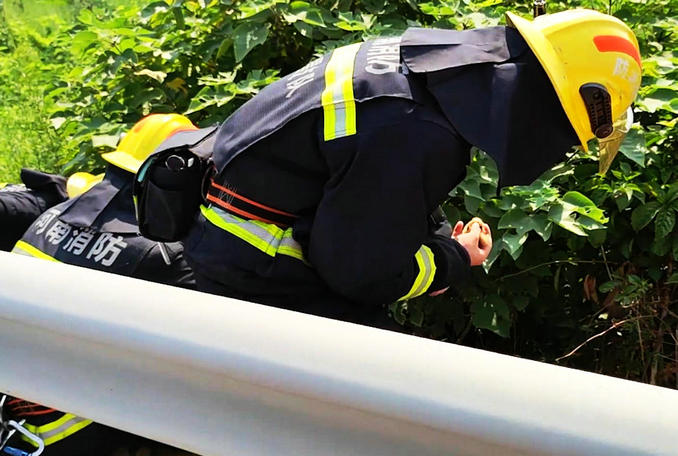 約十幾分鐘后,消防員們成功將散落在道路一側(cè)灌木叢中的的小雞崽全部安全送至紙箱內(nèi)。
