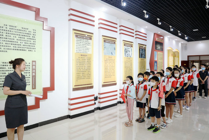 在民事審判二庭法官助理樊校君、尚集法庭法官助理宋汶倩的帶領(lǐng)下,學(xué)生們參觀了法文化館,一段段文字、一張張圖片、一個個故事、一件件史實,學(xué)生們邊走、邊聽、邊看,一部濃縮的法治史在他們眼前再現(xiàn),讓他們了解到法律的起源、發(fā)展和日漸成熟完善。