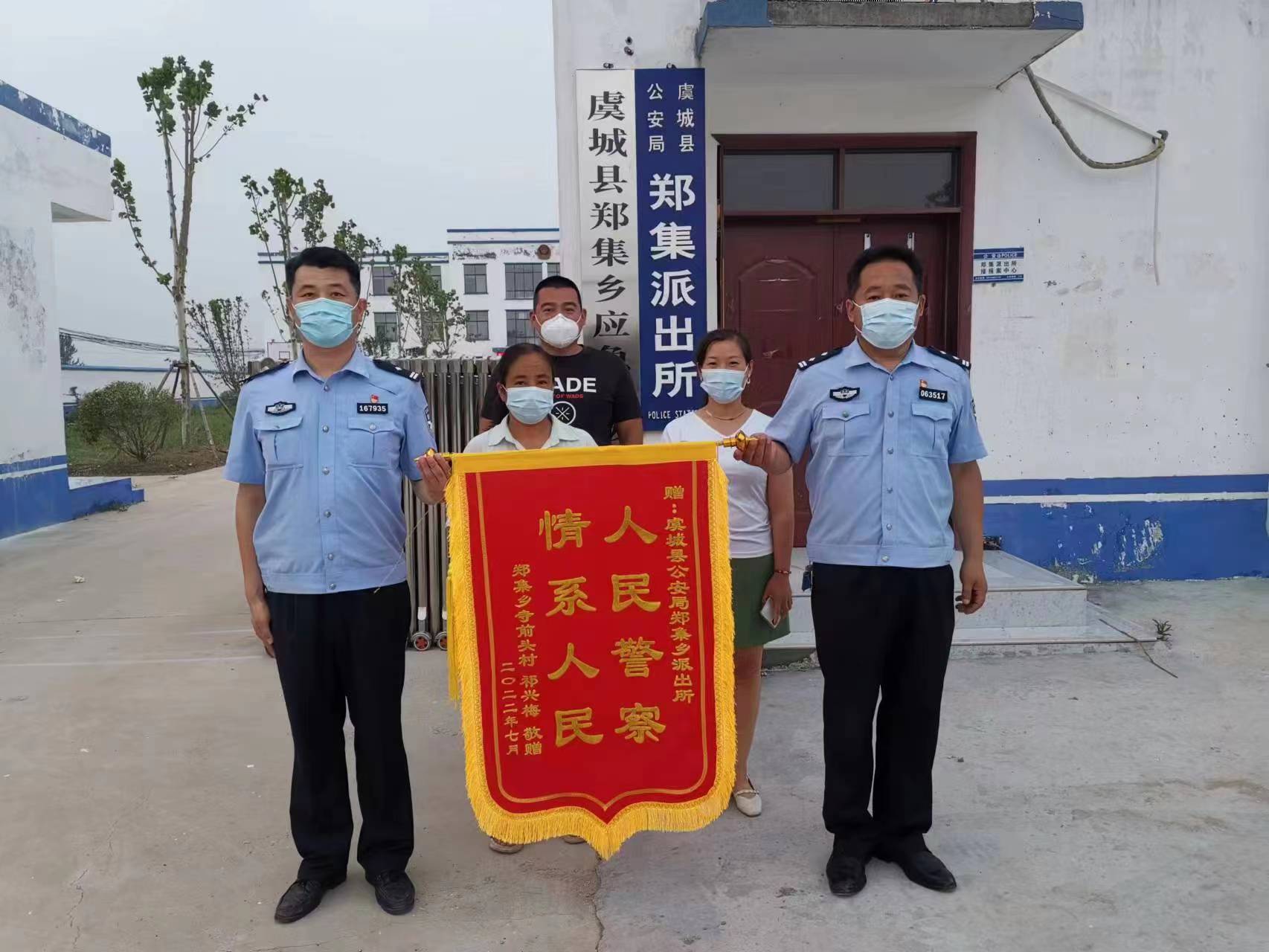 中新河南網(wǎng)商丘7月15日電 (李清龍 通訊員 張璽)“幸好有派出所民警幫忙,我才及時(shí)挽回了損失!”7月13日,河南虞城縣鄭集鄉(xiāng)祁女士和家人一起將一面寫有“人民警察 情系人民”的錦旗,送到虞城縣公安局鄭集派出所,向民警表示感謝。