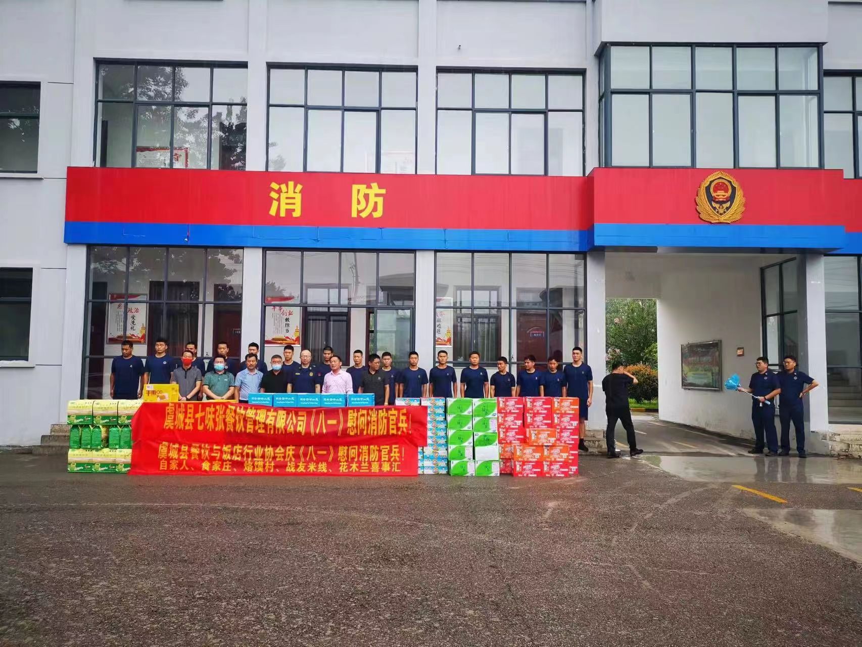 在“八一”建軍節(jié)即將來臨之際,虞城縣餐飲與飯店行業(yè)協(xié)會會長武君、書記張華等,協(xié)同部分餐飲與飯店行業(yè)會員單位負責(zé)人,一行來到該縣消防救援大隊,對長期以來奮戰(zhàn)在消防安全第一線的全體消防救援人員進行慰問。并將價值五千余元的綠茶、純凈水、火腿腸、面包、木蘭粉皮、方便面等生活物資送到全體人員的手中。