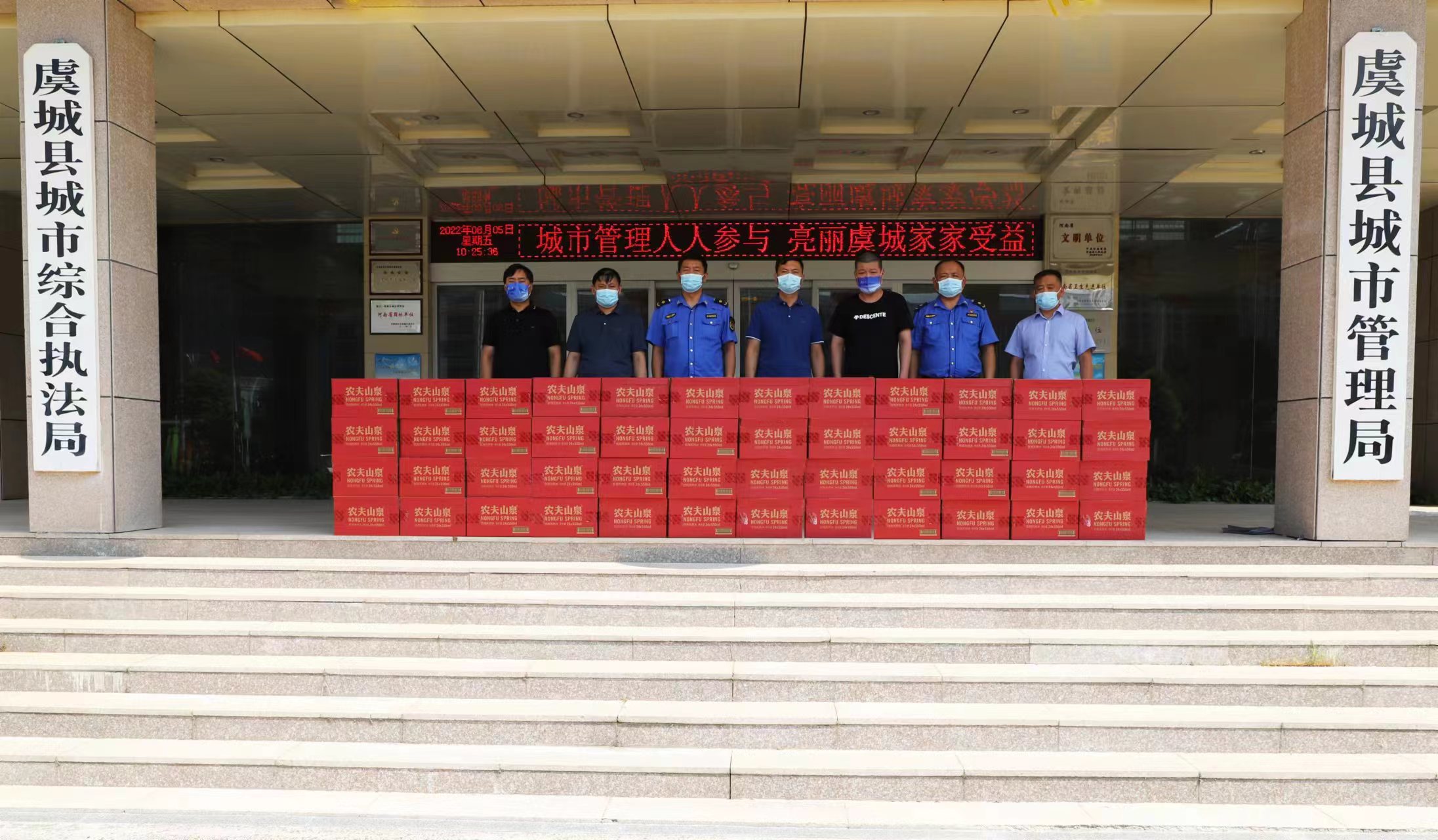 慰問中,李大東一行為奮戰(zhàn)在抗疫、城市管理工作一線的虞城縣環(huán)衛(wèi)工人和城管隊(duì)員送上礦泉水等物資,并提醒大家做好個(gè)人防護(hù),注意自身安全。