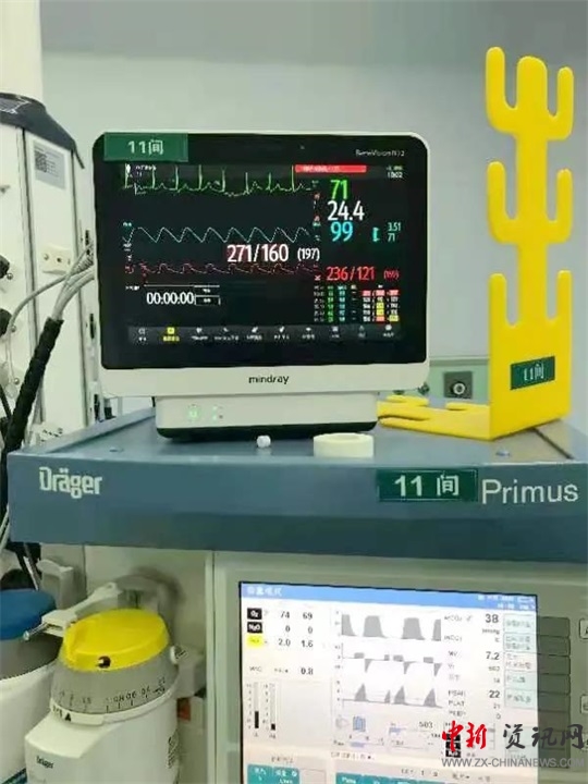 但正如術(shù)前所預(yù)料,術(shù)中險象環(huán)生...... 患者血壓忽高忽低,最高可達(dá)300/165mmHg,最低至65/40mmHg, 就像坐“過山車”一樣。危及時刻,劉太陽及其手術(shù)團(tuán)隊果斷快速斷分分離出腎上腺中央靜脈并結(jié)扎,立即阻斷了過量兒茶酚胺物質(zhì)的全身回流,之后患者血壓波動才逐步平穩(wěn)。經(jīng)過1個多小時的奮戰(zhàn),巨大腫瘤終于順利完整的得以切除,李先生的血壓及各項指標(biāo)逐漸趨向平穩(wěn)。