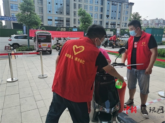 中新河南網(wǎng)駐馬店8月31日電(通訊員 王超亞)早上七點(diǎn),張少宇像往常一樣,早早地吃過飯去上班,不同的是,他去的不是單位,而是高新區(qū)金橋辦事處轄區(qū)同信世博院東棠小區(qū),作為志愿者參與到疫情防控工作中。“您好,請(qǐng)配合我們出示二維碼,”潘龍禮貌的向一位進(jìn)入小區(qū)的大姐說。另一邊,張少宇正在細(xì)心地為大姐車上的物品進(jìn)行消毒,“這個(gè)物品咱也不知道接觸過哪些人,我?guī)湍荆瑤Щ丶腋残囊稽c(diǎn)。”
