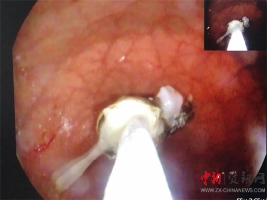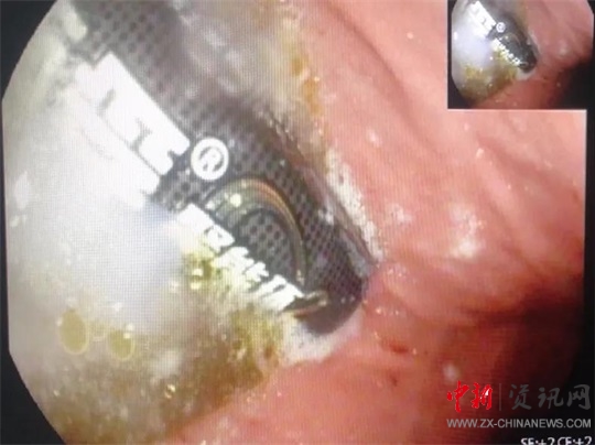 全身麻醉后,醫(yī)生龔靈輝操作胃鏡進入孩子胃部,發(fā)現(xiàn)一節(jié)電池浸在胃液里。由于患兒年齡小,胃部體積也很小,長達5cm的電池顯得特別巨大,同時胃鏡下的操作空間也很有限,為手術(shù)帶來了不小的麻煩。