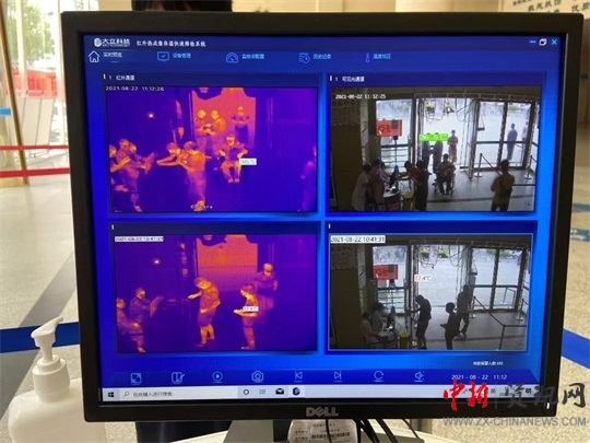 在發(fā)熱預檢分診臺設置有自動感溫監(jiān)視屏,同時配備有各種防護及消毒用品。通過感溫攝像頭,可在顯示器中清楚的看到所有進院人員的體溫,方便又高效。但是由于夏季天氣炎熱,有時會使自動感應裝置發(fā)出異常報警,這給預檢分診的護士們增加了不少的工作難度,每當發(fā)現(xiàn)機器報警時,預檢分診護士會立刻將“紅溫人員”攔下,盡管此時有可能是機器誤報,但她們?nèi)员局J真負責、一絲不茍的工作態(tài)度,讓“紅溫人員”休息片刻,待體溫穩(wěn)定后再次測量,無異常報警才可放行入院。