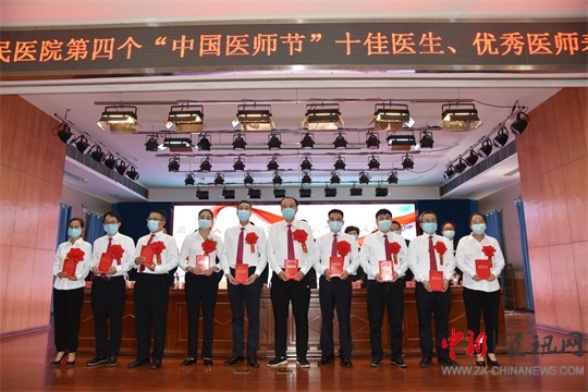 大會首先奏院歌,全體起立。李耀澤副院長宣讀表彰文件,十佳醫(yī)生、優(yōu)秀醫(yī)師分別上臺領獎,本次會議因疫情反復而推遲,向因疫情付出辛勞的醫(yī)護人員、志愿者們致敬。