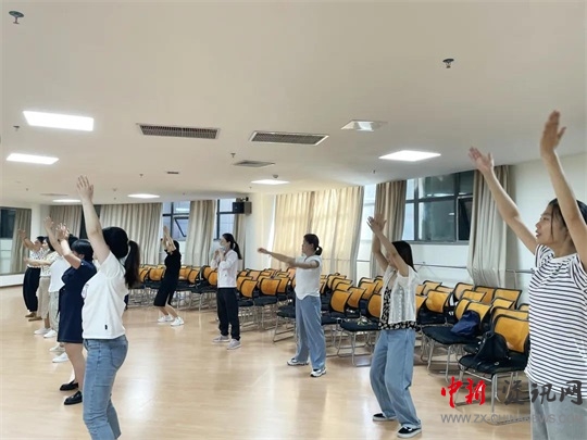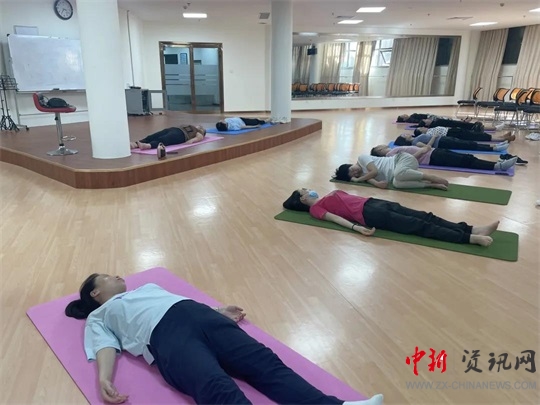 8點(diǎn)整,伴隨著優(yōu)美的音樂,學(xué)員們?cè)趶埢鄯贾魅魏团撕S褡o(hù)士的帶領(lǐng)下練起了“八段錦”。“八段錦”是中國(guó)傳統(tǒng)氣功中的內(nèi)臟導(dǎo)引術(shù),是一種古老的養(yǎng)生運(yùn)動(dòng),融合了氣功與健身操的養(yǎng)生方式……”在張慧芳主任的講解下,大家對(duì)八段錦有了初步的了解,練習(xí)過后,大家都感到身體非常的放松舒適,心情也豁然開朗。