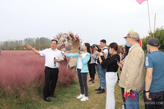 中新河南網(wǎng)駐馬店9月28電(通訊員 賀志勇)“秋意漸濃,粉黛花開;相約小鎮(zhèn),遇見精彩。”9月28日上午,由河南省臺(tái)辦組織的臺(tái)灣《聯(lián)合報(bào)》、《東森新聞云》,中央電視臺(tái)CCTV-4和河南電視臺(tái)等媒體組成的海峽兩岸記者聯(lián)合采訪團(tuán)一行25人,在平輿縣委常委、宣傳部長、副縣長王楠和東皇街道黨工委書記辛長松的陪同下,走進(jìn)平輿縣東皇街道藍(lán)天芝麻小鎮(zhèn),探尋芝麻的起源以及藍(lán)天芝麻小鎮(zhèn)令人心醉的美景。