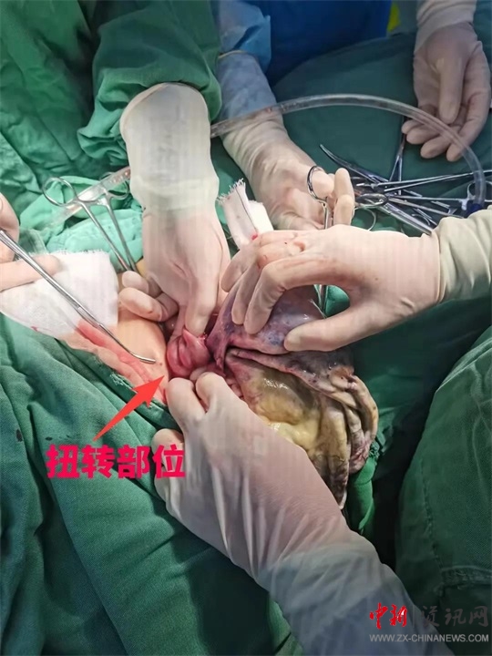 卵巢蒂扭轉(zhuǎn)是由于卵巢長了腫瘤,導(dǎo)致卵巢重心失衡,引起卵巢蒂發(fā)生扭轉(zhuǎn)、壓迫,從而使卵巢的血供受影響,嚴(yán)重的會導(dǎo)致卵巢壞死。常規(guī)的卵巢扭轉(zhuǎn)手術(shù)治療并不復(fù)雜,但由于冀奶奶年事已高,卵巢腫瘤又大,同時,她又伴有多個基礎(chǔ)疾病,術(shù)中及術(shù)后發(fā)生心腦血管意外的風(fēng)險極大。