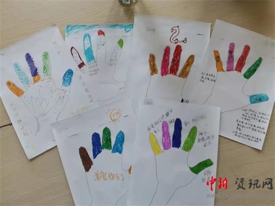 在工作人員的組織下,患者有序走進(jìn)心理治療室圍坐在一起。首先,由工作人員帶領(lǐng)大家做一個(gè)簡(jiǎn)單的手指操,既活躍了氣氛,又消除了大家的緊張情緒。隨后大家逐個(gè)進(jìn)行自我介紹,并用畫圖的方式畫下自己的手,在護(hù)士講解手指所代表的含義之后,由患者自己給畫的手指涂上顏色。在所有患者涂完色之后,每個(gè)人都根據(jù)自己的情況介紹了自己的繪畫。
