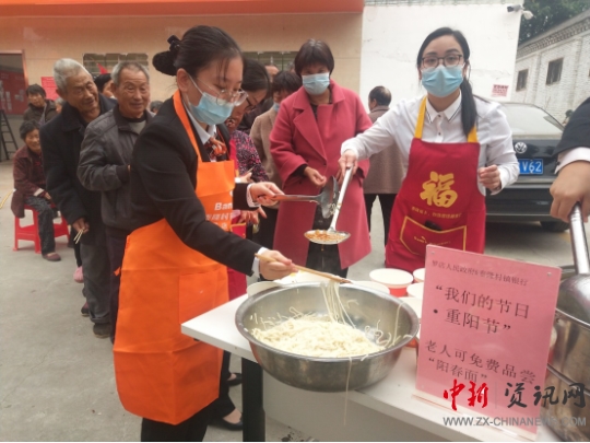 中新河南網(wǎng)駐馬店10月14日電(通訊員 阮紅全)九九重陽節(jié),濃濃敬老情。為深入學(xué)習(xí)貫徹黨的十九大精神,大力弘揚(yáng)“奉獻(xiàn)、友愛、互助、進(jìn)步”的志愿精神和中華民族尊老敬老愛老的傳統(tǒng)美德,10月14日,汝南縣羅店鎮(zhèn)政府聯(lián)合泰隆銀行開展“我們的節(jié)日·重陽節(jié)”主題活動,讓60歲以上老人免費(fèi)品嘗“陽春面”。