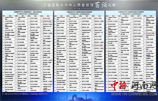 大會公布了三級醫(yī)院卒中中心質量管理百強名單,駐馬店市中心醫(yī)院在2024年全國三級卒中中心年度綜合排名、靜脈溶栓、動脈取栓三項中均為A++序列(第1-25名),在全國三級卒中中心年度動脈瘤栓塞或夾閉、頸動脈內(nèi)膜剝脫、頸動脈支架三項中均為A序列(第51-100名)。