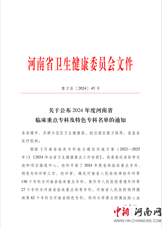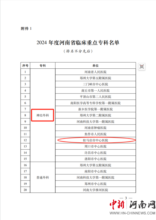 中新河南網(wǎng)駐馬店1月6日(通訊員:吳靖 孫玉瑩)近日,河南省衛(wèi)生健康委下發(fā)了《關(guān)于公布2024年度河南省臨床重點(diǎn)專科及特色?泼麊蔚耐ㄖ,駐馬店市中心醫(yī)院神經(jīng)外科、呼吸內(nèi)科獲批河南省臨床重點(diǎn)?疲恢匕Y醫(yī)學(xué)科獲批河南省臨床重點(diǎn)培育專科。
