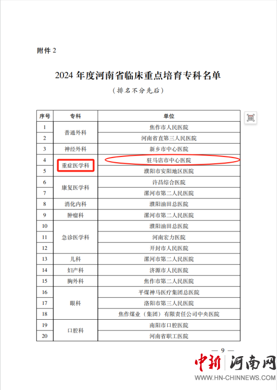駐馬店市中心醫(yī)院新增2個(gè)省級(jí)臨床重點(diǎn)?坪1個(gè)省級(jí)臨床重點(diǎn)培育學(xué)科