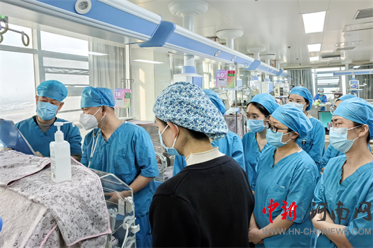 正當(dāng)寶寶病情稍好轉(zhuǎn),大家稍稍松口氣時(shí),小寶寶突然出現(xiàn)頻繁呼吸暫停、青紫。醫(yī)護(hù)人員立即給予再次插管上呼吸機(jī),并完善血常規(guī)、胸片等檢查,結(jié)果顯示寶寶感染了。再次上機(jī)意味著寶寶有可能無法撤離呼吸機(jī),情況危急。為了極力拯救這珍貴的生命,面對這一突發(fā)情況,醫(yī)院迅速啟動(dòng)多學(xué)科會診,藥劑科、影像科、超聲科等專家共同制定治療方案,最終幫助寶寶轉(zhuǎn)危為安。