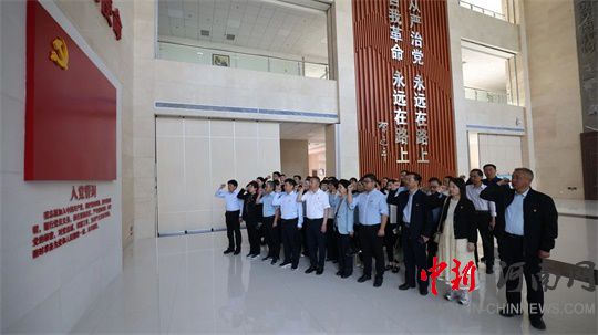 參觀結(jié)束后,全體黨員干部在黨旗前莊嚴(yán)重溫入黨誓詞,回顧初心使命。