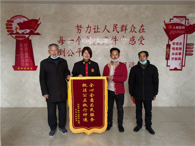 中新河南網(wǎng)3月8日電(李克選 朱小旭 賀先)3月7日,在這春回大地、萬物復(fù)蘇的美好時節(jié),女法官賀先迎來了當事人送來的“三八節(jié)”最好的禮物--寫著“全心全意為民服務(wù),執(zhí)法公正執(zhí)行神速”的一面錦旗。