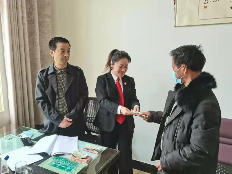 中新河南網(wǎng)3月21日(李克選 馮紫楊 朱小旭)“為了這一萬多塊錢工錢,我們?nèi)齻人這兩年找了被告不知道多少趟都沒結(jié)果,沒想到在鄧州市人民法院立案短短9天,就幫我們要回了工錢,我們對法院的處理結(jié)果很滿意!”案件當(dāng)事人感激地說道。3月30日,鄧州法院金莉莎法官鄭重地將被告鄭某拖欠的近萬元工錢交到當(dāng)事人手中,三名農(nóng)民工討薪案順利結(jié)案。