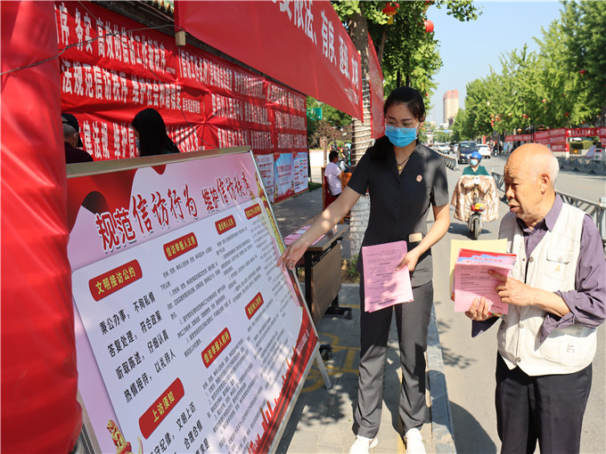 中新河南網(wǎng)5月6日電(李克選 謝叢晨 焦典范)《信訪工作條例》于2022年5月1日起正式實(shí)施。為暢通信訪渠道,進(jìn)一步營(yíng)造依法信訪、理性維權(quán)的良好氛圍,5月6日,河南省社旗縣人民法院在縣文化廣場(chǎng)開(kāi)展《信訪工作條例》法治宣傳活動(dòng)。