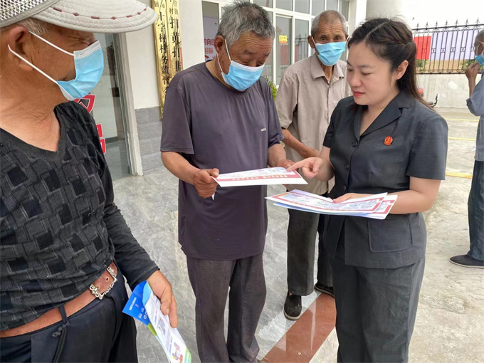 為進一步擴大打擊整治養(yǎng)老詐騙宣傳活動的覆蓋面,報告會后,金莉莎還和桑莊法庭的部分干警專門來到小楊營鎮(zhèn)十字村,向村干部和村民宣傳預(yù)防養(yǎng)老詐騙知識,讓群眾學(xué)會識別社會上各種以養(yǎng)老名義實施的保健培訓(xùn)、產(chǎn)品推介、投資理財、養(yǎng)老項目、以房養(yǎng)老、代辦“養(yǎng)老保險”等騙術(shù),提高識詐反詐能力,守好養(yǎng)老“錢袋子”,筑牢養(yǎng)老反詐“防護墻”。