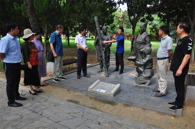 在許慎文化園,市民間文藝家協(xié)會會員參觀漢字六書石柱、漢字大道、叔重堂、說文館和文化長廊,在字圣殿拜謁許慎像。