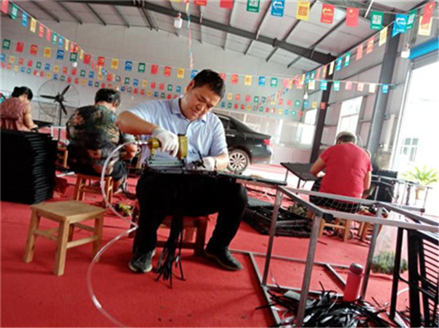 在另一個(gè)藤編車(chē)間,由于實(shí)行的是訂單化計(jì)件生產(chǎn)機(jī)制,經(jīng)過(guò)培訓(xùn)的村民們,甚至可以把原料拿回家,利用閑暇時(shí)間藤編各類(lèi)躺椅和家具。隔壁的廠房則是過(guò)塑印花車(chē)間,承接各類(lèi)裝飾、廣告印制,也安置了不少村民就業(yè)。這幾個(gè)生產(chǎn)車(chē)間,集中體現(xiàn)了各級(jí)政府對(duì)肖營(yíng)村產(chǎn)業(yè)扶貧的優(yōu)異成果,真正把扶貧模式由“輸血”變?yōu)榱?ldquo;造血”。