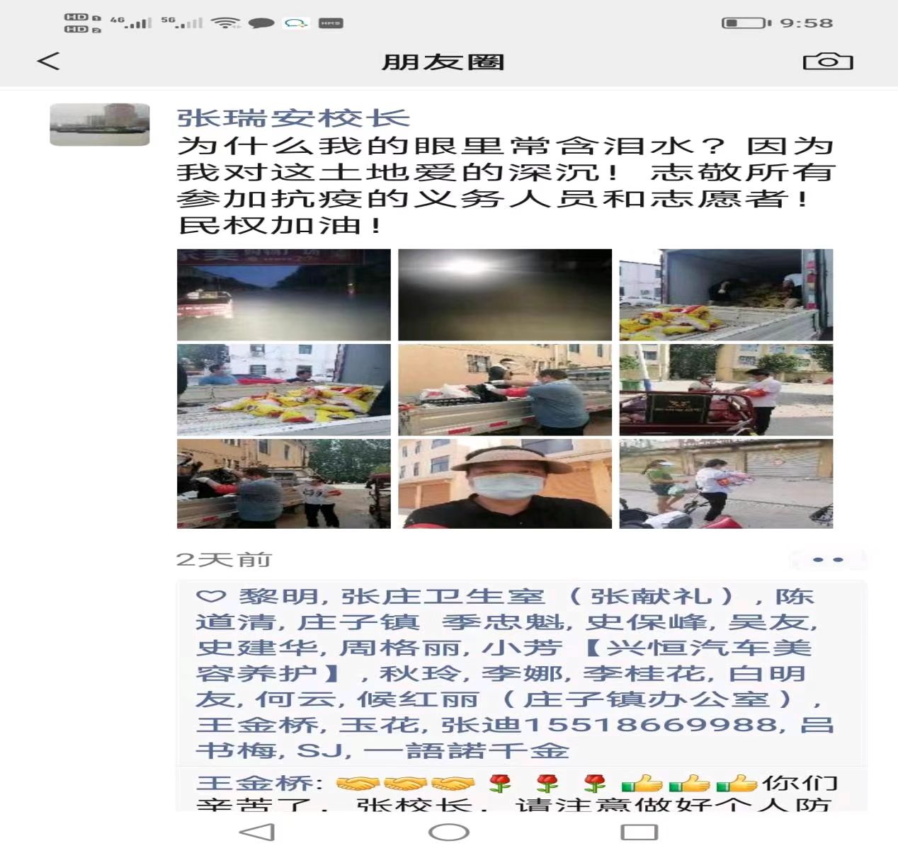 “為什么我的眼里常含淚水,因為我對這土地愛的深沉”,這是他在朋友圈里發(fā)表的一句話。“疫情不退我不回”,眾志成城奮戰(zhàn)在疫情防控第一線,他以實際行動支持這場疫情阻擊戰(zhàn),這些都體現(xiàn)著新時代教育工作者的責任與擔當。哪有什么歲月靜好,只不過有人在負重前行。