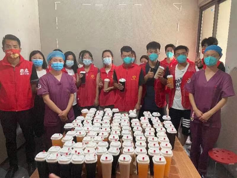 民權縣密切接觸者被送到夏邑縣進行集中隔離,醫(yī)護人員和志愿者加班加點的工作著,在近40℃的高溫下,醫(yī)護人員穿著厚厚的防護服,整個人浸泡在汗水中,絲毫不敢怠慢。秋已至,夏邑巴莊火鍋在韓政委經(jīng)理的帶領下,給醫(yī)護人員和志愿者送來了秋天的第一杯奶茶,讓他們在炎炎夏日感受到一絲清涼。韓經(jīng)理說:看到醫(yī)護人員和志愿者在高溫環(huán)境下辛苦工作,希望可以用加了冰的奶茶讓他們涼爽一些,也希望讓遠離家鄉(xiāng)的民權隔離人員感受到溫暖,為此次抗疫貢獻一點力量,用實際行動助力疫情防控。