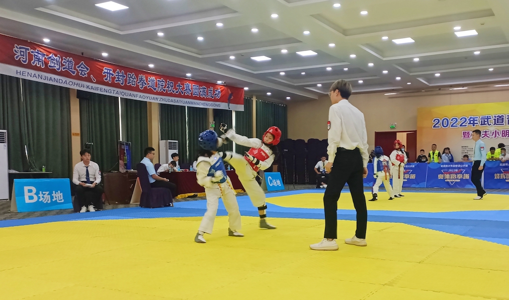 中新河南網(wǎng)8月17日電(陳英 通訊員 潘現(xiàn)忠)2022年8月14日下午,2022年武道青少年跆拳道公開(kāi)賽在中國(guó)鄭州西泰山景區(qū)千稼集會(huì)議中心圓滿落下帷幕,來(lái)自全國(guó)各地五十余家俱樂(lè)部參加了本次比賽。