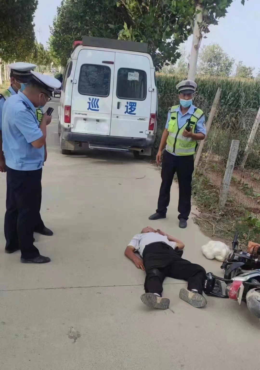 經(jīng)查,該男子無明顯傷痕,但神志不清,滿身酒氣。這條道路雖是鄉(xiāng)村道路,因是逢集日,人來車往不斷,男子睡在這里有嚴(yán)重的安全隱患。馮興華一邊指揮車輛避讓,一邊與附近村莊村干部聯(lián)系,查明醉漢身份住址。一個(gè)過路村民向民警報(bào)告說:這人好像是趙樓的趙某華。民警遂通知趙樓村村干部領(lǐng)人,并合力將醉漢扶至安全地帶并整理了其散落物品。一會(huì)兒,趙某華家人來到,將其領(lǐng)回。
