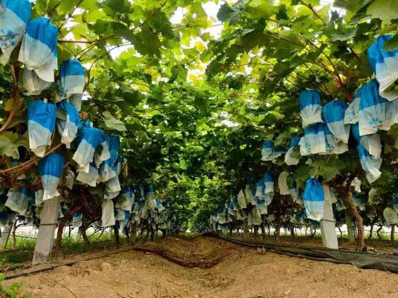 走進(jìn)該村村民王現(xiàn)啟的葡萄種植園,只見葡萄藤架被打理得井井有條,一串串瑪瑙似的葡萄讓人賞心悅目,濃郁的葡萄香氣縈繞鼻尖。王現(xiàn)啟正仔細(xì)地拆開白色套袋,查看葡萄成熟度,熟練地用剪刀將成熟的葡萄剪下。
