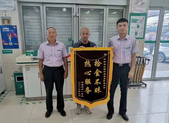 農(nóng)行商丘虞城縣綸城支行員工拾金不昧獲贈錦旗