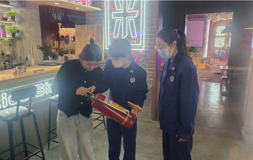 后倉街社區(qū)消防安全管理員日常對轄區(qū)門店消防安全排查過程中,通過排查發(fā)現(xiàn)門店服務(wù)人員對滅火器使用方法的知識匱乏。然后社區(qū)主動聯(lián)系文峰區(qū)消防隊(duì)邀請消防隊(duì)隊(duì)員深入轄區(qū)門店,對轄區(qū)門店內(nèi)的所有服務(wù)員逐個上門對其講解滅火器的使用方法,還有滅火器的管理和維修。并現(xiàn)場演示滅火器的使用方法,確保轄區(qū)商戶人員都能熟練掌握消防知識和技能。