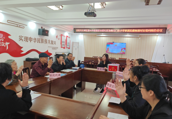 近日,后倉(cāng)街社區(qū)北門東家屬院老舊小區(qū)改造以后,院內(nèi)雖然干凈、寬敞了,部分居民反映說增加些鍛煉身體的器材更好。圍繞居民生活中的急難愁盼問題,社區(qū)召開了居民協(xié)商議事會(huì)。議事會(huì)上,社區(qū)書記把收集的問題向大家進(jìn)行了匯報(bào),大家你一言我一語,提出方案,并通過舉手表決。
