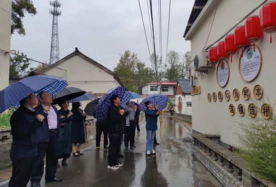 隨后采風團一行冒雨到位于尹集鎮(zhèn)的省級愛國主義、國防知識教育基地虎頭山新四軍革命烈士陵園,接受紅色愛國主義和國防知識教育,并進行了紅色文化采風。結束了虎頭山愛國主義教育基地采風后,大家又到尹集鎮(zhèn)百草園AAA美麗鄉(xiāng)村風景區(qū),省級五星黨支部村姬莊村實地進行了采風。