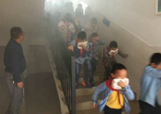 警鈴響起,全體教職工立即停下手中的工作,到達各自負責的位置。孩子們在老師的組織下捂住口鼻,彎下腰身,按照逃生路線有序逃生。疏散至安全地帶后,各班迅速清點人數,以年級為單位并向安全辦主任報告。