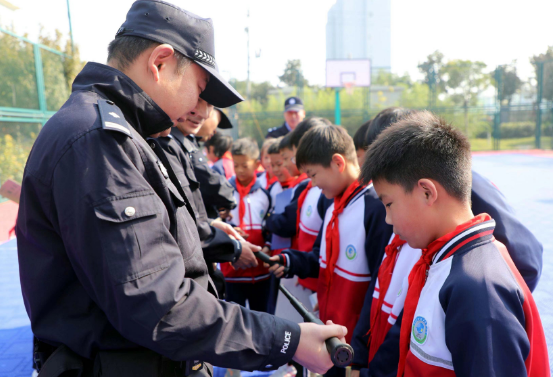 從審判庭出來,法官帶領(lǐng)同學(xué)們來到法警訓(xùn)練場。扶溝法院司法警察大隊(duì)的法警們向同學(xué)們講解了法警的單警裝備名稱和使用方法,具體展示了手銬、快拔式伸縮警棍、催淚噴射器的使用方法和注意事項(xiàng)。隨后,在司法警察的帶領(lǐng)下,同學(xué)們興致勃勃的體驗(yàn)了各種警用裝備。