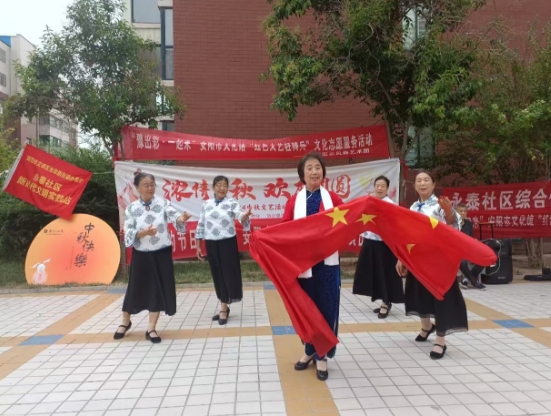 轄區(qū)文藝團隊帶來的一系列精彩節(jié)目令人目不暇接。開場舞《花開中國》以絢麗的舞姿和宏大的場面拉開了活動的序幕,為中秋增添了一抹亮麗的色彩,仿佛在訴說著祖國的繁榮昌盛和人民的幸福生活。豫劇《朝陽溝》的精彩演繹,讓觀眾們仿佛置身于那個充滿故事的地方,感受到了濃郁的地方特色。那熟悉的唱腔,勾起了人們對傳統(tǒng)文化的熱愛和對家鄉(xiāng)的深深眷戀。旗袍秀《和諧中國》則展現(xiàn)了中國傳統(tǒng)服飾的優(yōu)雅與大氣。她們用自己的美麗和自信,詮釋了中國傳統(tǒng)文化的魅力,讓人仿佛穿越時空,回到了那個充滿詩意的年代。電吹管合奏《軍中綠花》,旋律悠揚,讓人感受到了軍人的奉獻與擔(dān)當(dāng)。那激昂的旋律,仿佛在訴說著軍人們的英勇事跡和無私奉獻,讓人對他們充滿了敬意。
