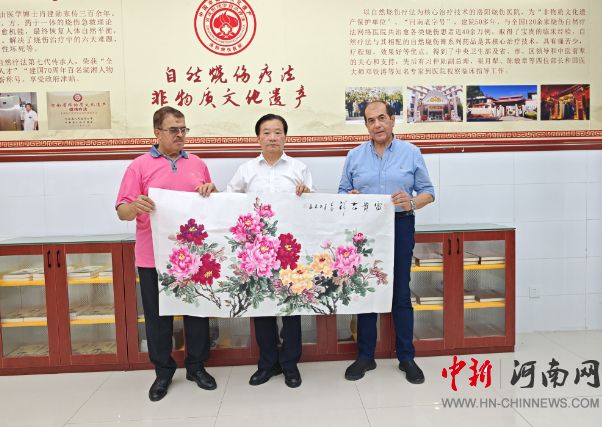肖建勛教授指出:“此次交流是踐行‘中醫(yī)藥走出去’戰(zhàn)略的重要一步。埃及作為非洲和中東樞紐,將成為中醫(yī)藥國(guó)際化的重要支點(diǎn)。”肖建勛教授向來賓贈(zèng)送了其專著《大圣手》及洛陽(yáng)牡丹畫。