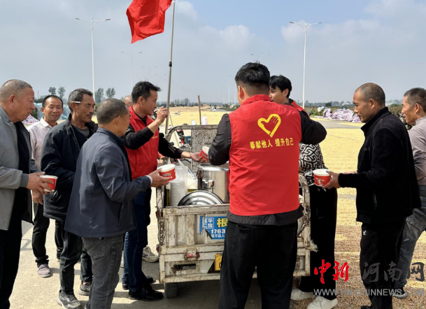 “群眾在哪兒,黨員就服務(wù)到哪兒。”趙橋村黨支部組建“金穗先鋒”黨員志愿服務(wù)隊(duì),分片包干、輪班作業(yè)。在晾曬現(xiàn)場(chǎng),身著紅馬甲的黨員干部們穿梭在糧堆間,翻曬、裝袋、搬運(yùn)。到了飯點(diǎn),黨員干部們變身“炊事員”,將一份份熱菜熱飯打包分裝,準(zhǔn)時(shí)送往各晾曬點(diǎn)。正在翻曬玉米的村民感慨道:“從收割到晾曬,再到吃上熱乎飯,全靠黨員干部幫忙!”