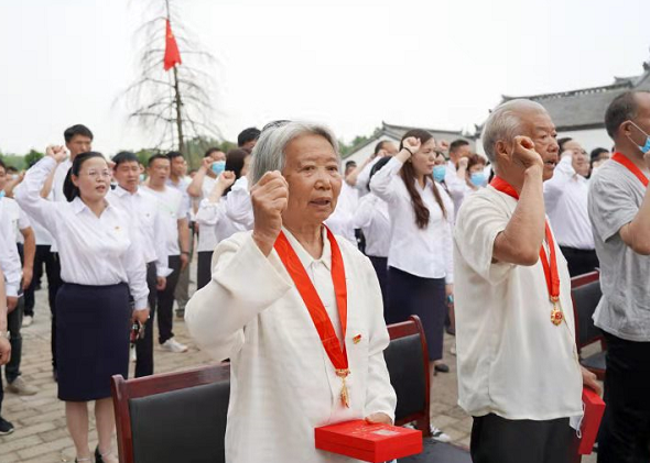中新河南網(wǎng)6月29日電 2021年6月29日,河南省尉氏縣大營鎮(zhèn)黨委率領(lǐng)兩百多名黨員,會(huì)聚焦園,重溫入黨誓詞,其中包括焦裕祿同志生前一起工作奮斗過的戰(zhàn)友。