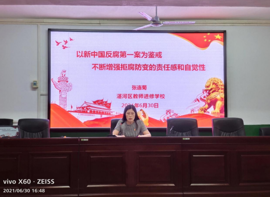 隨后,該校為湛河區(qū)“學(xué)習(xí)強(qiáng)國”挑戰(zhàn)賽獲獎(jiǎng)人員頒獎(jiǎng)。結(jié)束后,校黨支部書記、校長張連菊同志給全體黨員上黨課:題目是《以新中國反腐第一案為鑒戒,不斷增強(qiáng)拒腐防變的責(zé)任感和自覺性》,學(xué)校班子成員和全體黨員干部、教職員工共同聆聽黨課。