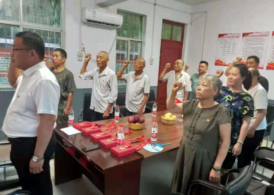 當(dāng)天早上7時(shí)半,家住尹集鎮(zhèn)大劉莊村寨溝村民組95歲52年黨齡的張希賢,張新莊組89歲66年黨齡的牛姣等老人,就吃過早飯來到村黨員群眾服務(wù)中心參加建黨百年慶祝活動(dòng)。當(dāng)天大劉莊村黨部在鄉(xiāng)村振興駐村第一書記張朝輝,村黨支部書記田萬甫的主持下,組織全村在家的30多名黨員舉行了升國(guó)旗、重溫入黨誓詞、為8位黨齡50年以上老黨員發(fā)放紀(jì)念章,聽取黨史教員講黨史,召開黨員民主生活會(huì)、座談會(huì)等活動(dòng)以此來紀(jì)念中國(guó)共產(chǎn)黨成立100周年。