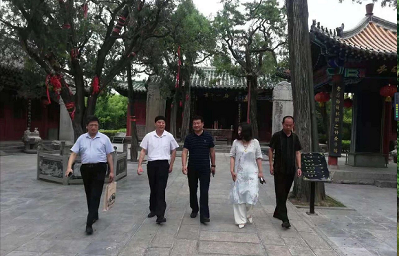 淅川范蠡研究會考察組在衛(wèi)輝市委宣傳部副部長張建軍(左三)、衛(wèi)輝市文聯(lián)主席李志蔚(右二)陪同下考察比干文化建設