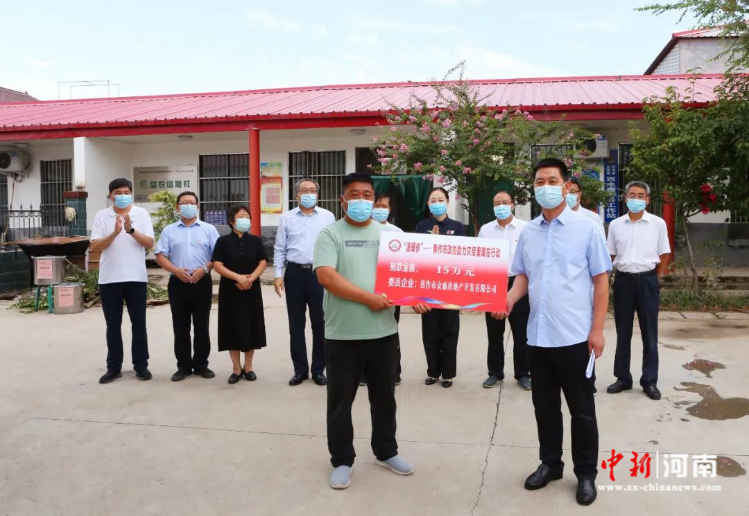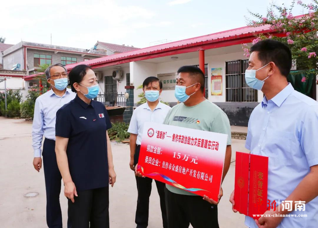 中新河南網(wǎng)8月6日電(記者 高新科)受災群眾生產(chǎn)生活恢復的怎么樣?疫情防控措施是否落實到位?8月5日下午,帶著政協(xié)委員深切的問候和濃濃的關愛,焦作市政協(xié)主席楊婭輝到受災嚴重的修武縣五里源鄉(xiāng)西水寨村以及焦作市政協(xié)機關對口幫扶的中站區(qū)趙莊村,看望受災群眾,并向他們送去委員愛心企業(yè)——焦作市眾盛房地產(chǎn)開發(fā)有限公司捐助的善款20萬元。焦作市政協(xié)副主席陳湘為捐助企業(yè)頒發(fā)“愛心捐助證書”,秘書長田晉源參加捐助活動。
