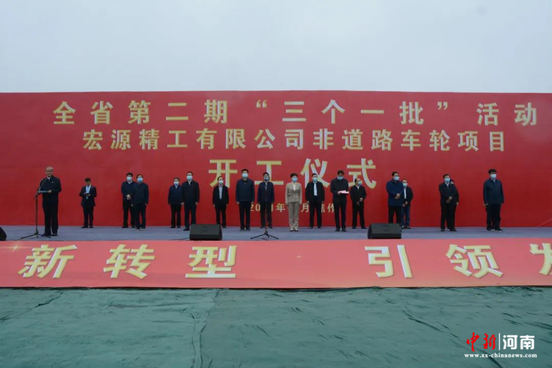 中新河南網(wǎng)10月9日電(記者 高新科 通訊員 袁金勝)10月8日上午,焦作市委書記葛巧紅在博愛縣出席全市第二期“三個一批”項目集中開工儀式,并宣布宏源精工有限公司非道路車輪項目開工。焦作市領導李民生、王建修、宮松奇、路紅衛(wèi)、王朝杰等參加活動,博愛縣委書記陳泓致辭。